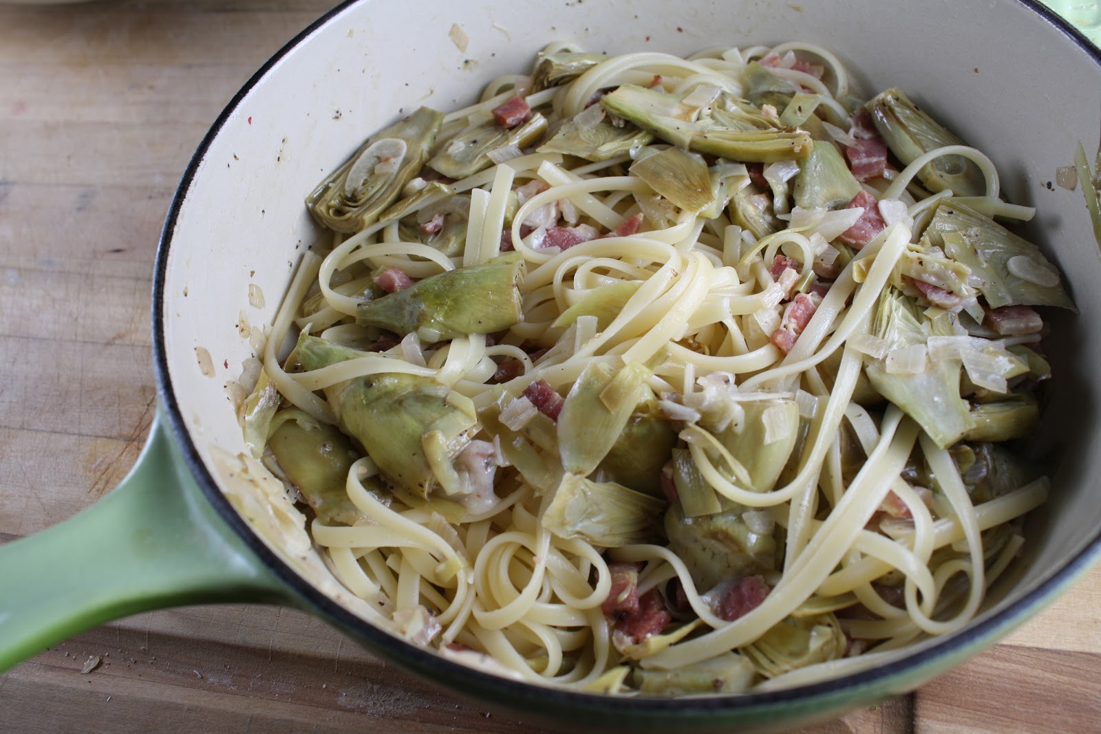 Linguine with artichokes and pancetta